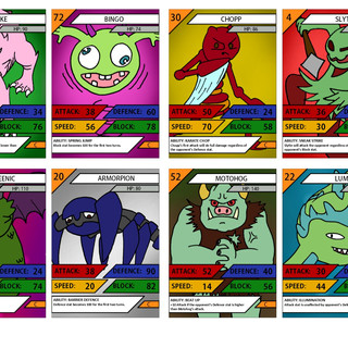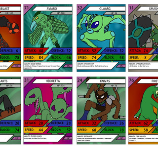 This is a card game that I have made, heavily inspired by a previous card game I created when I was 10. Most of the creatures are redesigns of my previous creations, so more redesigned than others, although there are a number of new designs. Rules can be read below the gallery: